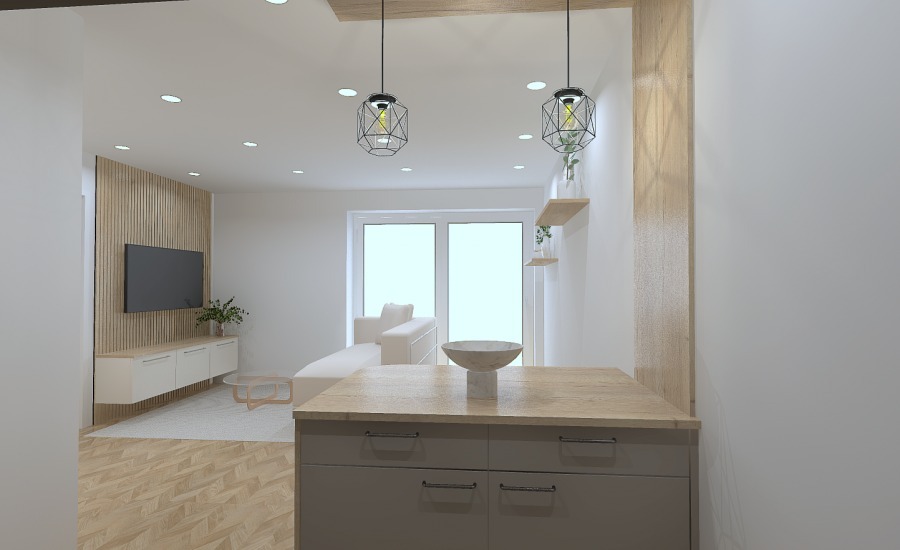 - 1 pièce de vie cuisine salon/séjour de plus de 22 m2 avec baie vitrée en aluminium de marque K-LINE donnant accès sur une terrasse plein SUD de 12 m2 équipée de dalles sur plots,