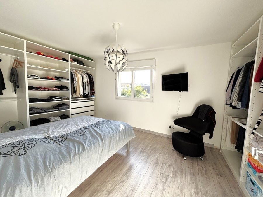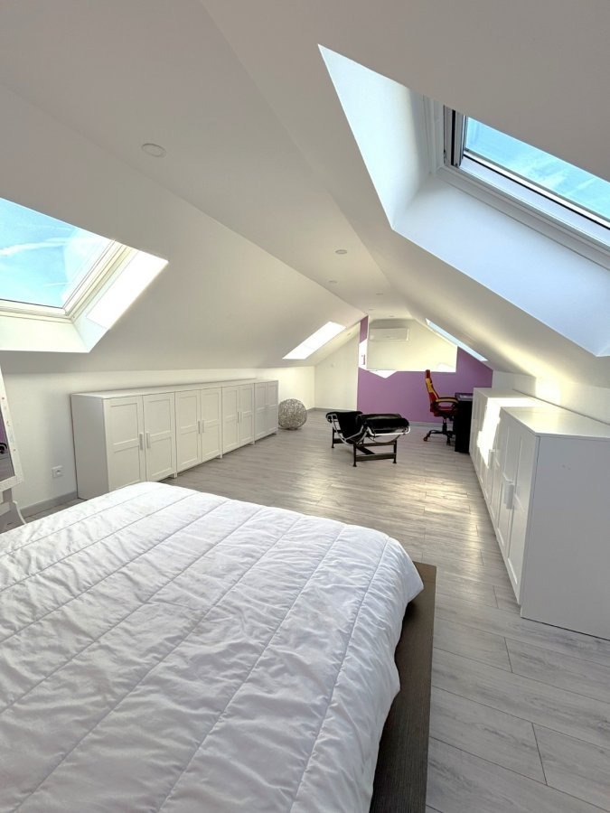 de 3 chambres (de 11m², 12m² et 15m²) avec dressings incorporés ainsi qu'une 4eme chambre de 32m2 au sol avec convecteur clim (chaud, froid) dont l'accès se fait par la chambre de 11m². Pouvant convenir pour un espace parental avec chambre et dressing ou chambre et bureau privatif ou chambre et espace privatif de détente, mais également pour ado ou enfant avec chambre et espace de loisir/jeu.