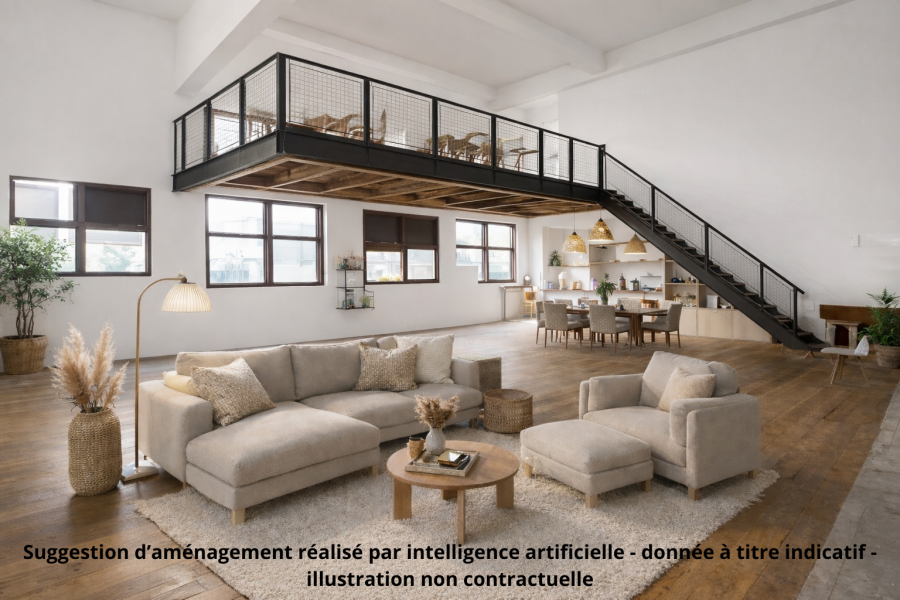 - En un grand LOFT moderne et atypique avec mezzanines ou sans, belles hauteur sous plafond et vue sur la charpente bois.